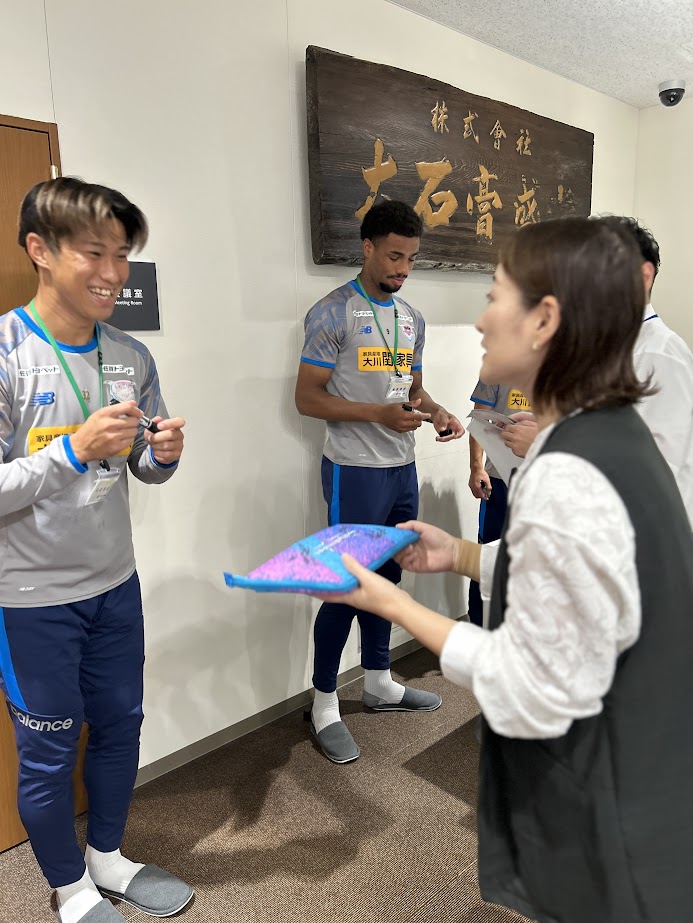 2025年10月8日(水) メディア情報 イベント サガン鳥栖の選手が会社を訪問されました 弊社が長年、スポンサーをさせていただいている サガン鳥栖の小川選手、ジョー選手、日野選手がスポンサー訪問に来社されました。 サガン鳥栖ファンの社員のサインにも快く応じていただき、みんな大興奮でした。 ジョー選手、色紙に弊社の社名を一生懸命書いていただきありがとうございました。 新着情報一覧